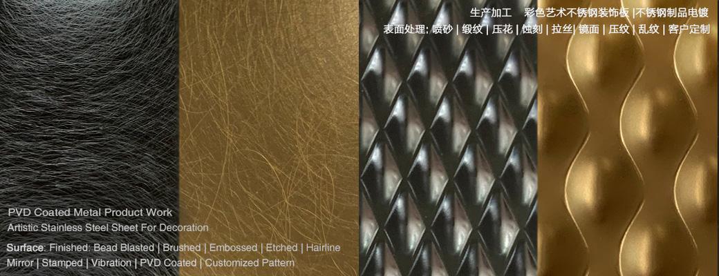 我廠致力于高檔彩色不銹鋼板材與制品的表面開發(fā)和研究,擁有目前最先進的生產(chǎn)設(shè)備和不銹鋼表面處理的生產(chǎn)經(jīng)驗與技術(shù),專業(yè)、專注! !并已取得ISO9001國際質(zhì)量標(biāo)準(zhǔn)認(rèn)證,采用嚴(yán)格的質(zhì)量管理體系及產(chǎn)品檢測,精益求精!現(xiàn)已成為市場上最具活力和創(chuàng)意的高檔不銹鋼裝飾板材生產(chǎn)廠商之一。